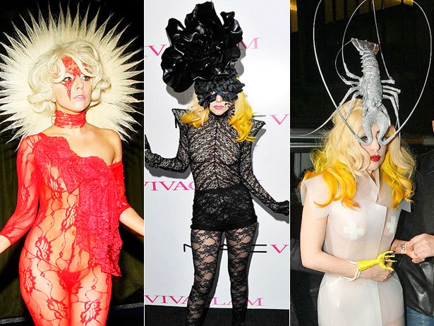 Singer lady Gaga with different styles of garments, from extreme to extreme.